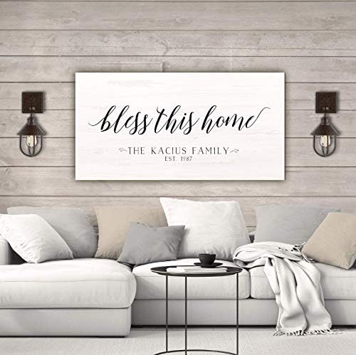 Amazon Com Bless This Home Sign Canvas Wall Art In Black Size 40 X 20 X 1 5 Posters Prints